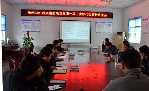 1月15日,在公司的統(tǒng)一部署下,路面公司各項(xiàng)目組織召開集團(tuán)一屆三次職代會精神宣貫會,集中學(xué)習(xí)傳達(dá)會議精神,認(rèn)真分析當(dāng)前各項(xiàng)目生產(chǎn)面臨的形勢任務(wù),精心謀劃新一年的工作。