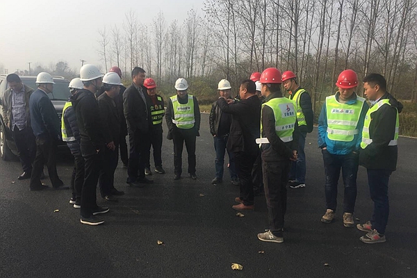 11月21日上午,合寧高速改擴建項目辦副主任劉祥勝帶領各監(jiān)理、施工單位到公司承建的合寧05標觀摩交流瀝青上面層施工技術。