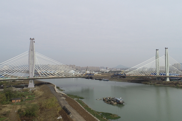 遠(yuǎn)遠(yuǎn)的就能看見,在巢湖市東南的裕溪河上,兩對魚梭型的塔柱高聳入云,分立兩岸,仿佛四位銀色衛(wèi)士,在守衛(wèi)著居巢大地。