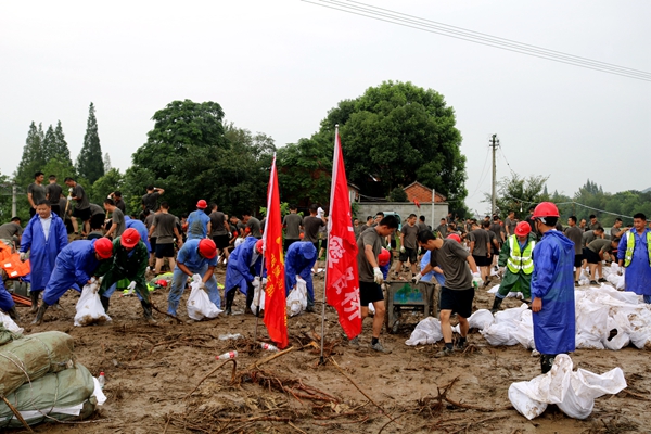 7月23日,路面公司組建的防汛抗洪搶險救援隊在完成同大圩保衛(wèi)戰(zhàn)后,又快速集結(jié)隊伍,冒雨逆行,轉(zhuǎn)戰(zhàn)增援紫荊村小南河抗洪搶險,和正在參與抗洪搶險的解放軍官兵共同投入戰(zhàn)斗。連續(xù)6小時的冒雨奮戰(zhàn),共填裝轉(zhuǎn)運沙袋5000多只,成功完成強固堤壩任務(wù),比預(yù)定時間提前了近兩小時。