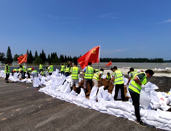 近日,受巢湖水位上漲影響,巢湖南岸支流白石天河水位暴漲。為應(yīng)對白石天河險情,安徽路橋馬院橋項目、郭柯路項目組成聯(lián)合抗洪搶險突擊隊,緊急趕往廬江縣馬塘村白石天河段進行搶險。此次搶險共調(diào)動人員30余人,大型裝載機兩臺,裝填沙袋1000余只,筑堤50余米,排除兩處險情,有效保障了當(dāng)?shù)卮迕竦纳敭a(chǎn)安全。
