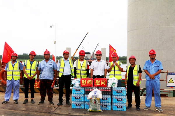 太陽(yáng)炙烤著大地,體感溫度逼近40℃。面對(duì)高溫?zé)崂?,?xiàng)目多措并舉,全力做好現(xiàn)場(chǎng)施工安全保障關(guān)。每日安排送清涼,采購(gòu)西瓜、綠豆、白糖、礦泉水及防暑降溫藥品發(fā)放到一線工人手中。同時(shí),加強(qiáng)暑期安全施工技能培訓(xùn),實(shí)施“白+黑”錯(cuò)峰上崗,全力保障生產(chǎn)安全。