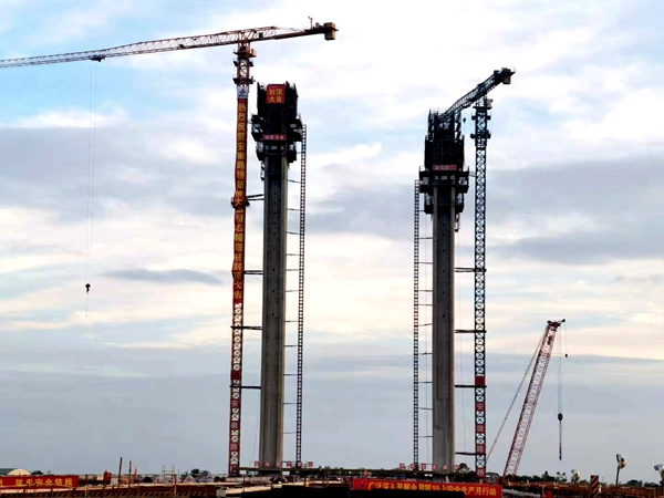 引江濟淮項目新橋大道橋首根塔柱順利封頂