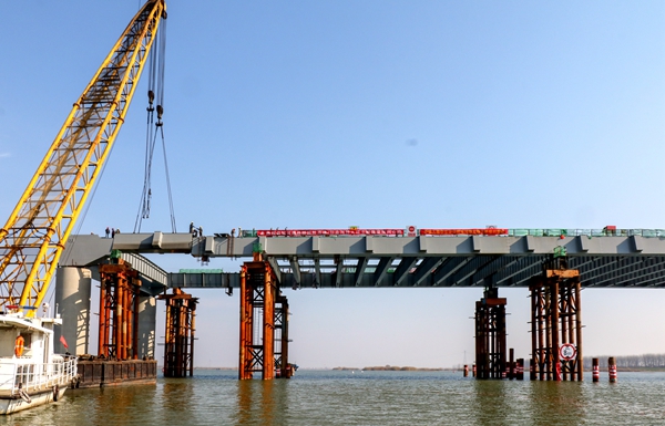 固蚌高速02標(biāo)澮河特大橋主橋鋼梁順利合龍