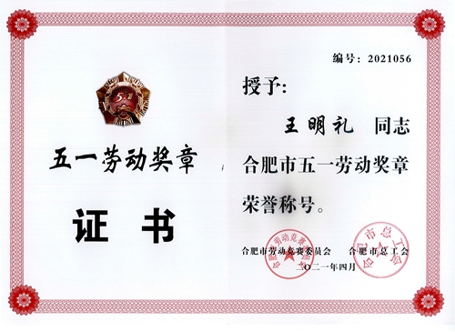 公司員工榮獲合肥市“五一勞動(dòng)獎(jiǎng)?wù)隆?/h2>
