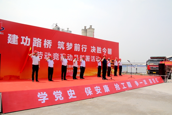 路面公司總經(jīng)理薛斌作動(dòng)員講話,副總經(jīng)理陳智宣讀了勞動(dòng)競(jìng)賽活動(dòng)方案,項(xiàng)目經(jīng)理代表、黨員代表、青年代表和施工班組代表分別作了表態(tài)發(fā)言。現(xiàn)場(chǎng)還進(jìn)行了“黨員先鋒隊(duì)”、“工人先鋒號(hào)”、“青年突擊隊(duì)”授旗。