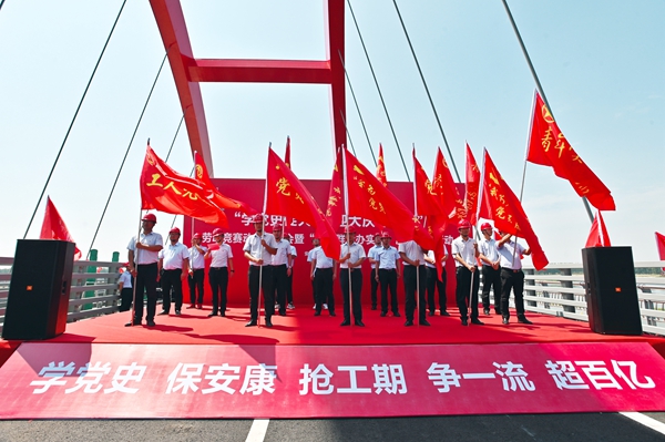 6月24日,道路分公司“學(xué)黨史促大干,迎大慶謀發(fā)展”勞動(dòng)競(jìng)賽動(dòng)員部署會(huì)暨“我為群眾辦實(shí)事”服務(wù)提升活動(dòng)在固蚌02標(biāo)澮河大橋現(xiàn)場(chǎng)和渡江戰(zhàn)役總前委孫家圩子舊址成功舉辦。分公司領(lǐng)導(dǎo)班子、后勤各部門負(fù)責(zé)人、各項(xiàng)目經(jīng)理、黨支部書記、青年代表及工人代表共計(jì)70余人參加。