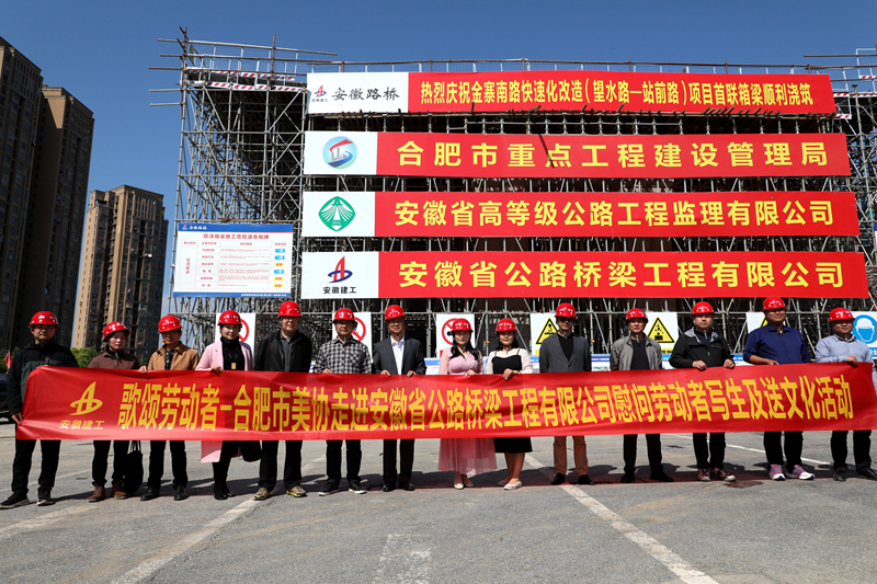 4月26日下午,合肥市美協(xié)、市書畫院開展的“歌頌勞動者——安徽省公路橋梁工程有限公司慰問勞動者、寫生及送文化”活動走進金寨南路(站前路-深圳路)快速化改造項目-1標段項目。合肥市書畫院院長邵鑫,合肥市美協(xié)副主席、秘書長胡玉,合肥市美協(xié)副主席、書畫院副院長周建祥,合肥市美協(xié)副主席韓一民等參加。