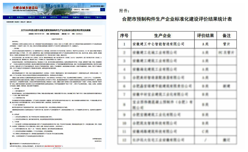 安徽建工中侖智能制造有限公司榮獲合肥市裝配式建筑預(yù)制構(gòu)件生產(chǎn)企業(yè)標(biāo)準(zhǔn)化建設(shè)A類(lèi)評(píng)價(jià)