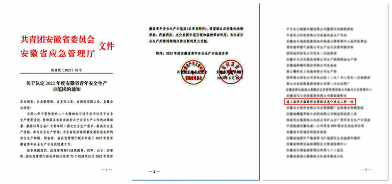 公司重點(diǎn)項(xiàng)目獲評(píng)“2022年度安徽省青年安全生產(chǎn)示范崗”
