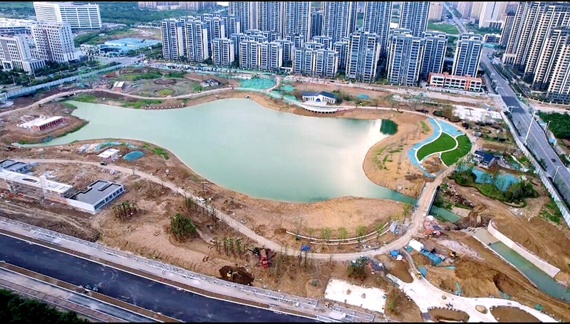 8月1日下午,記者來到該公園項(xiàng)目建設(shè)現(xiàn)場(chǎng)看到,工程車輛來回穿梭,各種機(jī)械設(shè)備正在緊張作業(yè),工人們有的在公園東南角區(qū)域進(jìn)行地面鋪磚、綠化,有的在水庫西側(cè)架設(shè)游樂設(shè)施。據(jù)施工現(xiàn)場(chǎng)負(fù)責(zé)人介紹,項(xiàng)目目前每天有近200人施工,他們采取錯(cuò)峰施工、備齊備足防暑物資等措施,確保工人們?cè)诟邷靥鞖饫锇踩┕?;現(xiàn)階段,公園既定各項(xiàng)工程節(jié)點(diǎn)已全部完成,園區(qū)內(nèi)硬質(zhì)景觀工程完成60%,綠化工程完成50%。