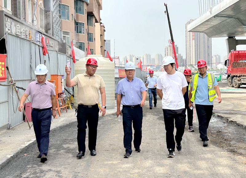 8月7日上午,合肥市重點(diǎn)局副局長(zhǎng)鄭浩先后到公司承建的金寨南路快速化改造(望水路-站前路)項(xiàng)目、金寨南路(站前路-深圳路)快速化項(xiàng)目-1標(biāo)段項(xiàng)目調(diào)研,就進(jìn)一步加快施工進(jìn)度、落實(shí)好防暑降溫措施和安全文明施工提出相關(guān)要求。