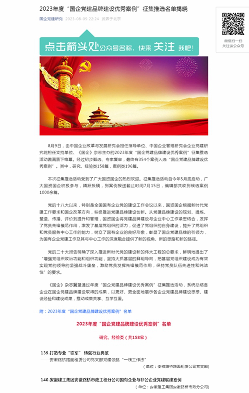 公司黨建品牌入選2023年度“國(guó)企黨建品牌建設(shè)優(yōu)秀案例”