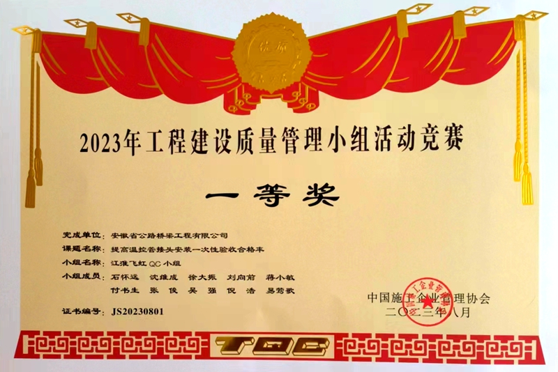8月11日,中國(guó)施工企業(yè)管理協(xié)會(huì)“2023年(首屆)工程建設(shè)行業(yè)質(zhì)量管理小組活動(dòng)高質(zhì)量發(fā)展大會(huì)”在山西太原順利閉幕。會(huì)議對(duì)各地區(qū)及行業(yè)協(xié)會(huì)推薦的1468個(gè)優(yōu)秀QC成果進(jìn)行了集中發(fā)布,其中橋梁分公司申報(bào)的QC成果《提高溫控管接頭安裝一次性驗(yàn)收合格率》榮獲一等獎(jiǎng),市政分公司申報(bào)的QC成果《提高地下車(chē)庫(kù)地坪施工合格率》《研制超大仿石道板磚鋪裝機(jī)》榮獲二等獎(jiǎng)。