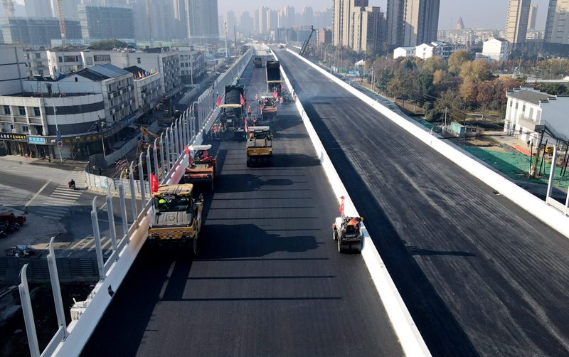 【百日攻堅大會戰(zhàn)】金寨南路快速化改造(望水路-站前路)項目主橋瀝青路面開始攤鋪