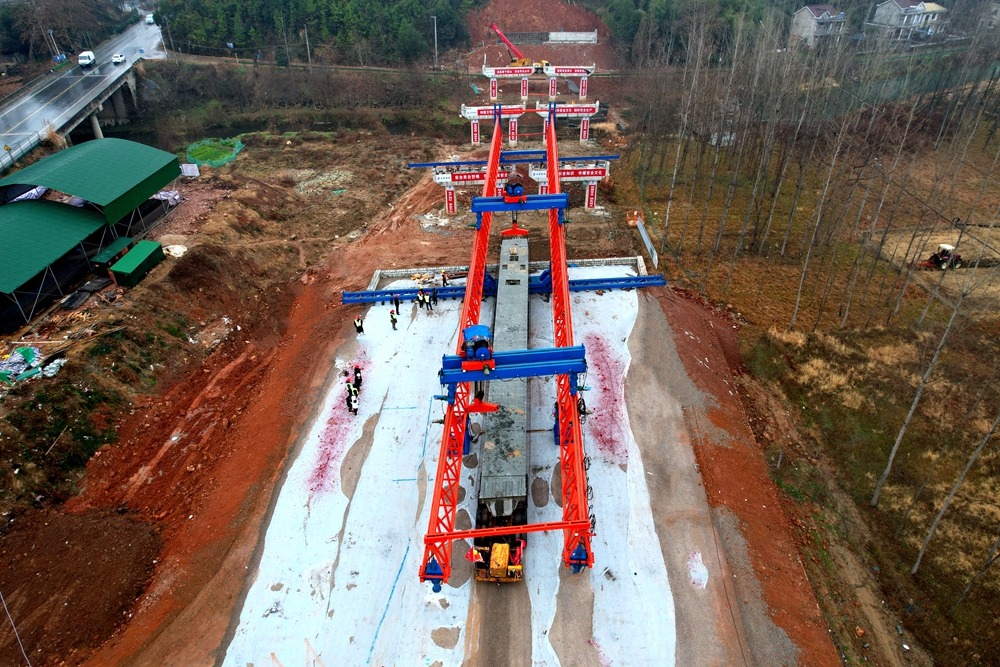 12月18日,G329孫埠至大汪村一級公路改建工程首片箱梁順利架設(shè)。