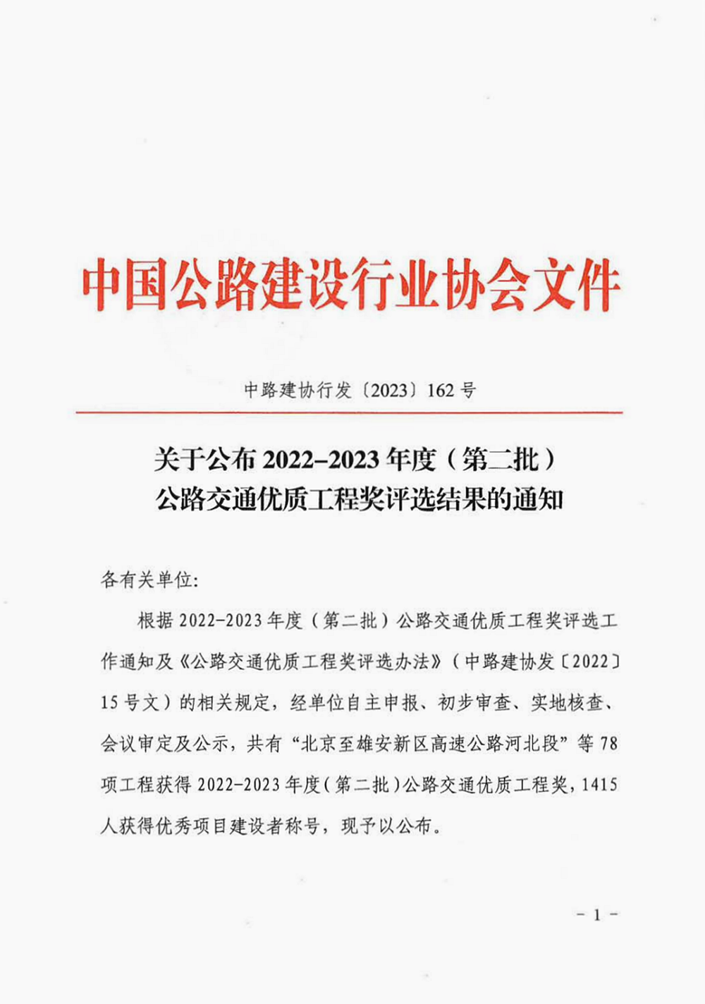 公路交通優(yōu)質(zhì)工程獎(jiǎng)(李春獎(jiǎng))主要圍繞建設(shè)管理理念、工程建設(shè)質(zhì)量、科技創(chuàng)新成果等方面進(jìn)行選拔,是全國公路交通行業(yè)最高質(zhì)量獎(jiǎng),也是公路建設(shè)者的最高榮譽(yù)。
