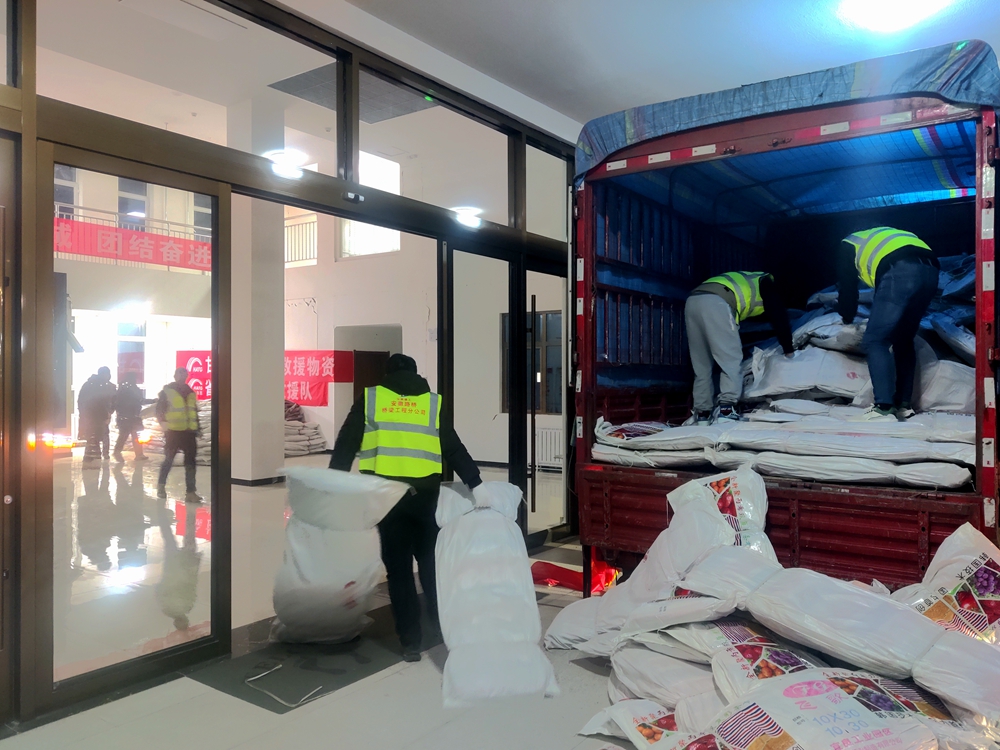 距積石山縣地震震中僅21公里的永靖縣劉家峽水庫(kù)楊塔鄉(xiāng)段環(huán)庫(kù)公路先后發(fā)生山體坍塌堵塞,嚴(yán)重阻礙交通出行。項(xiàng)目部在與當(dāng)?shù)卣〉寐?lián)系后緊急出動(dòng),第一時(shí)間趕往現(xiàn)場(chǎng)開(kāi)展清掃工作,歷經(jīng)4小時(shí)作業(yè)將落石全部清理完畢,確保道路通暢。項(xiàng)目部所在的楊塔鄉(xiāng)勝利村部分房屋出現(xiàn)大裂縫,為保障村民人身安全,項(xiàng)目部主動(dòng)聯(lián)系有需要的村民到項(xiàng)目工人生活區(qū)進(jìn)行取暖和避險(xiǎn)。在得知積石山縣地震災(zāi)區(qū)缺少彩條布及篷布等緊急物資時(shí),項(xiàng)目迅速籌集采購(gòu)彩條布、篷布共計(jì)50000平方米,并連夜送往災(zāi)區(qū)以備使用。