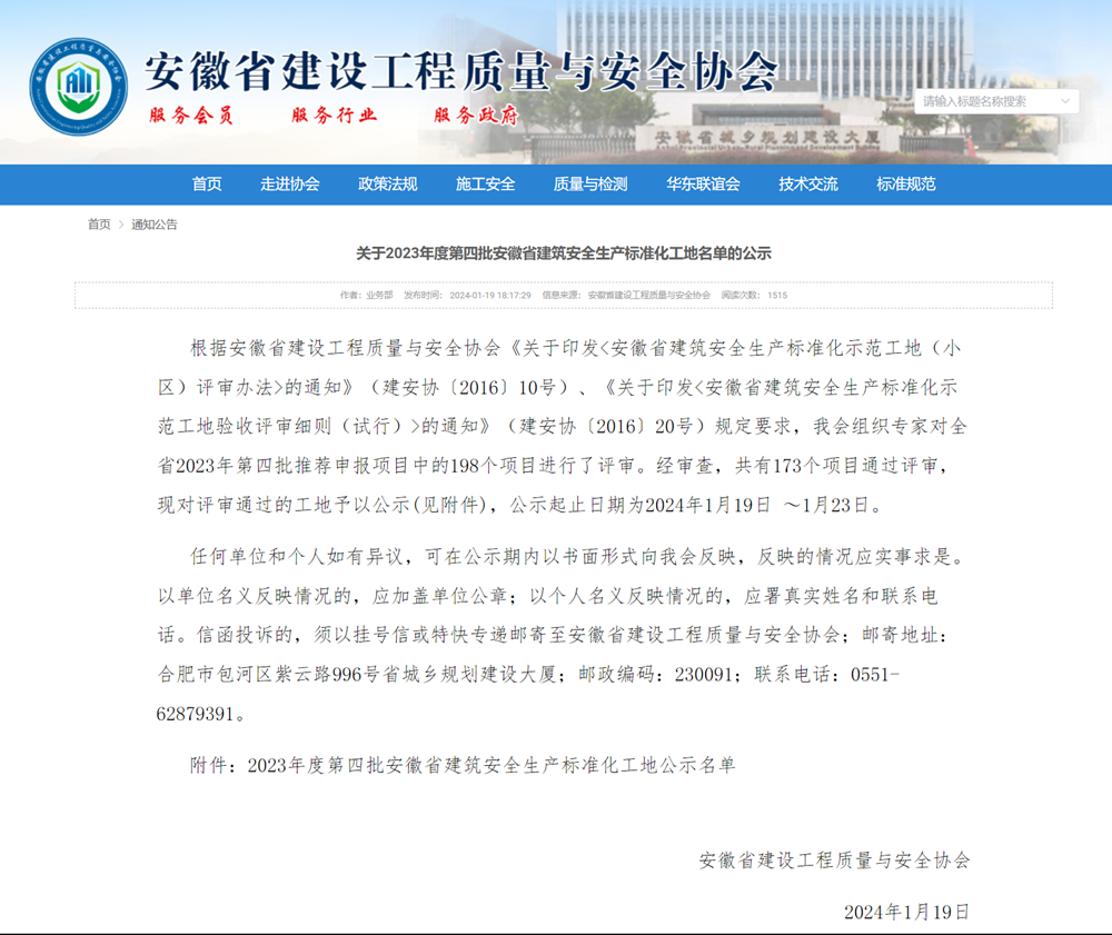 公司一批項目獲評“安徽省建筑安全生產(chǎn)標準化工地”