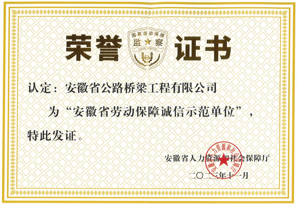 近日,省人力資源和社會(huì)保障廳公布2023年安徽省勞動(dòng)保障誠信示范單位名單,公司獲此殊榮。