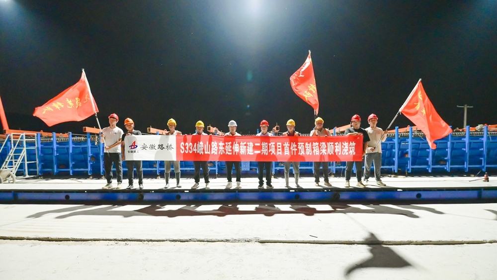 6月14日晚,隨著最后一方混凝土入模,S334峨山路東延伸新建二期工程項目全線首片預制箱梁順利澆筑,標志著項目箱梁預制工作正式拉開帷幕。