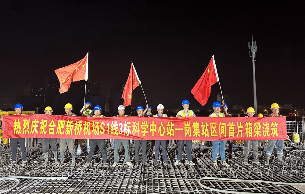 【路橋“競(jìng)”行時(shí)】合肥新橋機(jī)場(chǎng)S1線3標(biāo)科學(xué)中心站-崗集站區(qū)間首跨箱梁完成澆筑
