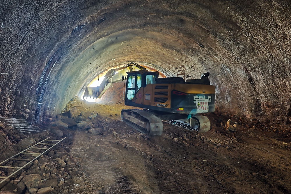 在江梓隧道左洞的內(nèi)部,也同時迎來了激動人心的一刻。隨著挖掘機挖掘產(chǎn)生的巨大轟鳴聲在隧道內(nèi)回蕩,最后一塊巖石被精準地挖掘開來,陽光透過新開的洞口灑進隧道,照亮了這片黑暗的空間。工人們紛紛停下手中的工作,歡呼雀躍,慶祝這一時刻的到來。江梓隧道左洞的順利貫通,為項目后續(xù)耙齒嶺大橋梁板運輸及安裝提供了有力保證,為整體工程的推進奠定了堅實基礎(chǔ)。江梓隧道右洞的施工也在緊張施工中,預計于8月份貫通。