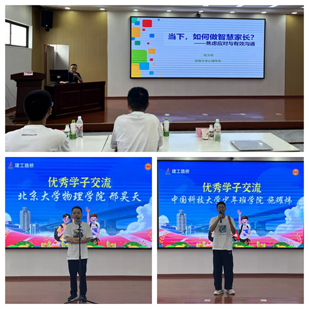 本次活動(dòng)開展了親子寄語、愛心慰問,邀請(qǐng)了安徽大學(xué)心理學(xué)系教授開展教育講座。同時(shí),還邀請(qǐng)了來自北京大學(xué)、中國(guó)科學(xué)技術(shù)大學(xué)等優(yōu)秀學(xué)生代表分享了學(xué)習(xí)經(jīng)驗(yàn)。