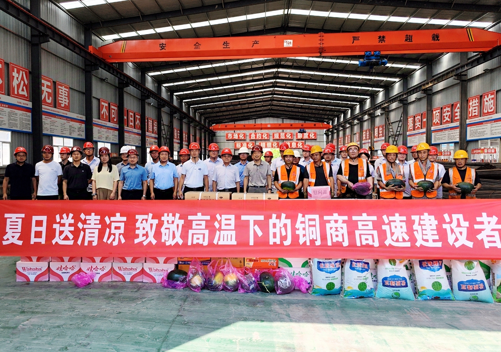 8月8日上午,省鐵投公司黨委副書記、總經(jīng)理何勝利帶隊(duì)到銅商高速主體1標(biāo)開展“夏日送清涼”慰問,為高溫下堅(jiān)守一線的建設(shè)者們送去防暑降溫物資,叮囑項(xiàng)目要做實(shí)做細(xì)防暑降溫工作,合理調(diào)整作業(yè)時間,切實(shí)保障廣大建設(shè)者的生命健康安全。