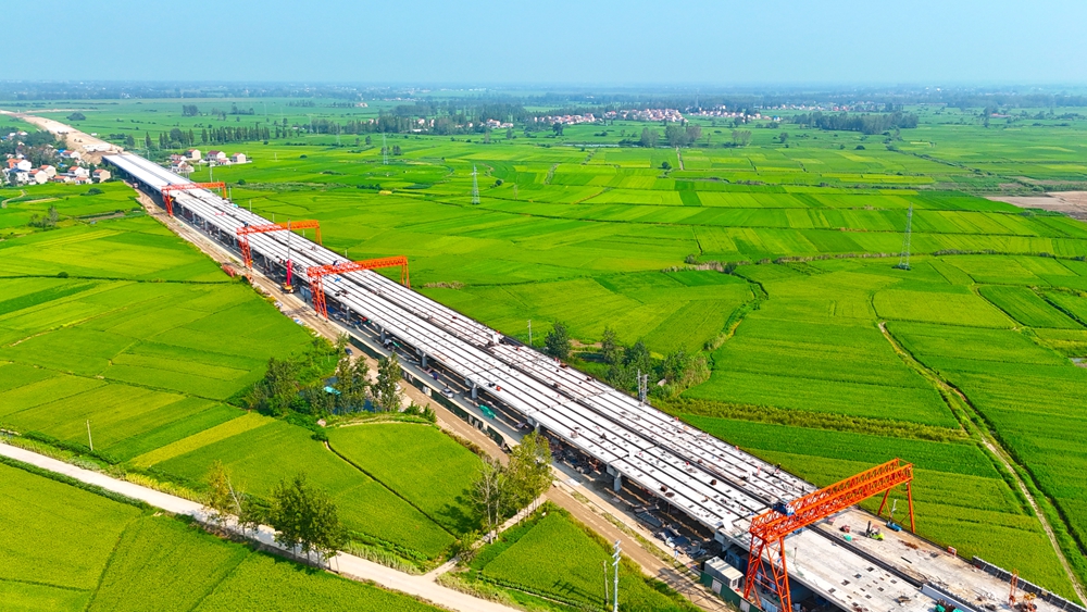 【路橋“競”行時】S16合周高速4標(biāo)東淝河大橋項(xiàng)目全線預(yù)制箱梁架設(shè)完成