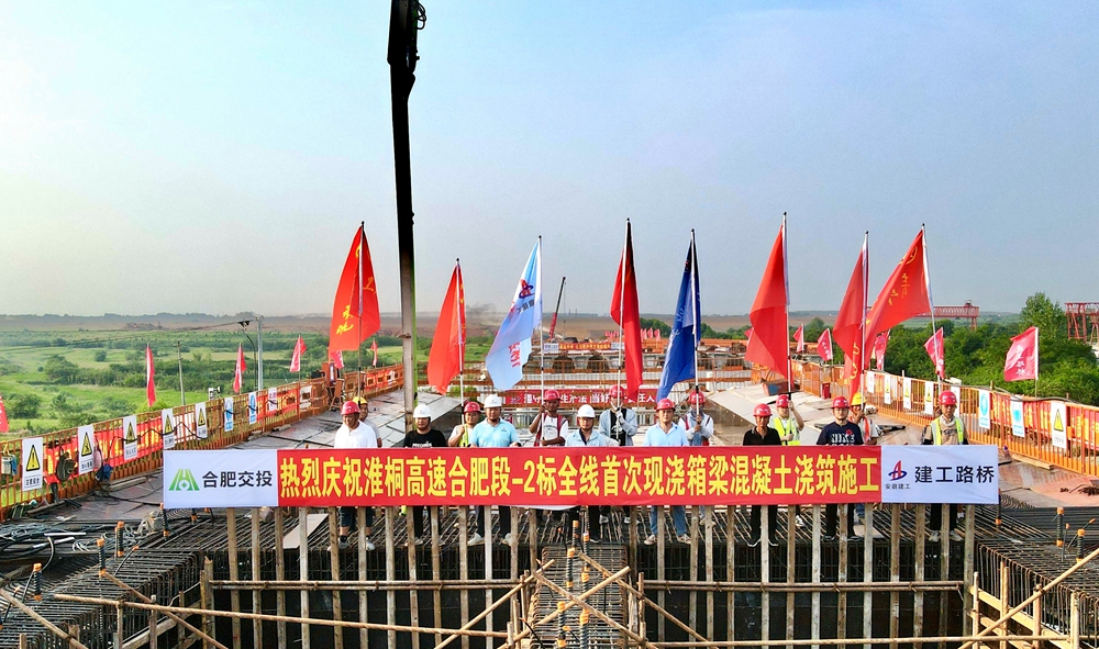【路橋“競”行時】淮桐高速合肥段路基2標全線首次現(xiàn)澆箱梁澆筑完成