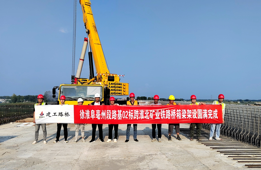 【路橋“競”行時】徐淮阜高速亳州段路基02標(biāo)跨淮北礦業(yè)鐵路橋箱梁架設(shè)完成