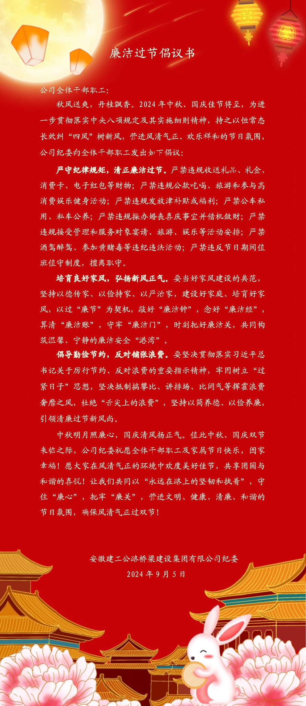 清風路橋 | 廉潔過節(jié)倡議書