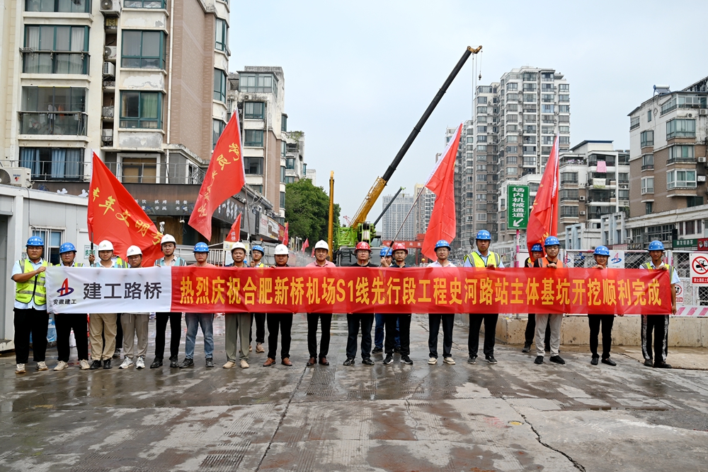 【路橋“競”行時】合肥新橋機(jī)場S1線先行段項(xiàng)目史河路站主體結(jié)構(gòu)基坑開挖完成