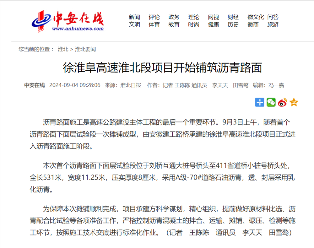 【名媒聚焦】央廣網(wǎng)、中安在線、淮北新聞聯(lián)播等主流媒體聚焦徐淮阜高速淮北段項(xiàng)目施工建設(shè)