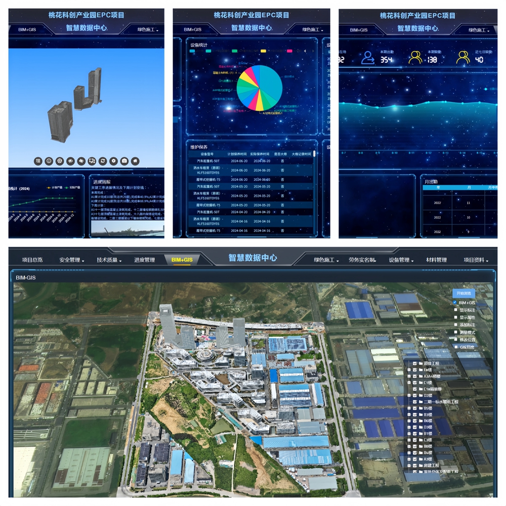 桃花科創(chuàng)園項目堅持推廣應用BIM和信息化數(shù)字技術(shù),在建設之初就定下實現(xiàn)“一網(wǎng)、一云、一模型”的建設目標。即全過程依靠BIM模型搭載數(shù)據(jù)信息,實現(xiàn)園區(qū)運行狀態(tài)立體監(jiān)測全聯(lián)網(wǎng),匯聚共享園區(qū)信息云資源,實現(xiàn)一模到底?;凇爸腔酃さ亍惫芾硐到y(tǒng),項目采取“監(jiān)控+BIM+GIS”可視化監(jiān)控,迅速、精準地通過BIM模型中相應位置監(jiān)控,檢查和定位現(xiàn)場違規(guī)作業(yè),并采用IP廣播鏈接進行應急指揮調(diào)度,結(jié)合AI監(jiān)控、智能安全帽等設備,實現(xiàn)違規(guī)行為自動預警提醒,降低安全風險。項目相繼榮獲省住建廳“智慧工地”試點項目以及“合肥市智能建造試點工程”。