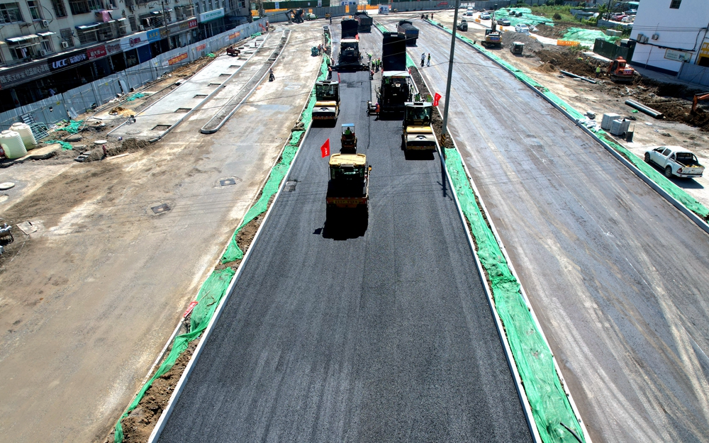 在肥西市政項(xiàng)目,項(xiàng)目團(tuán)隊(duì)搶抓晴好天氣,人員機(jī)械密切配合,推動(dòng)創(chuàng)新大道、云谷路全面進(jìn)入瀝青攤鋪施工階段,提前完成計(jì)劃產(chǎn)值。