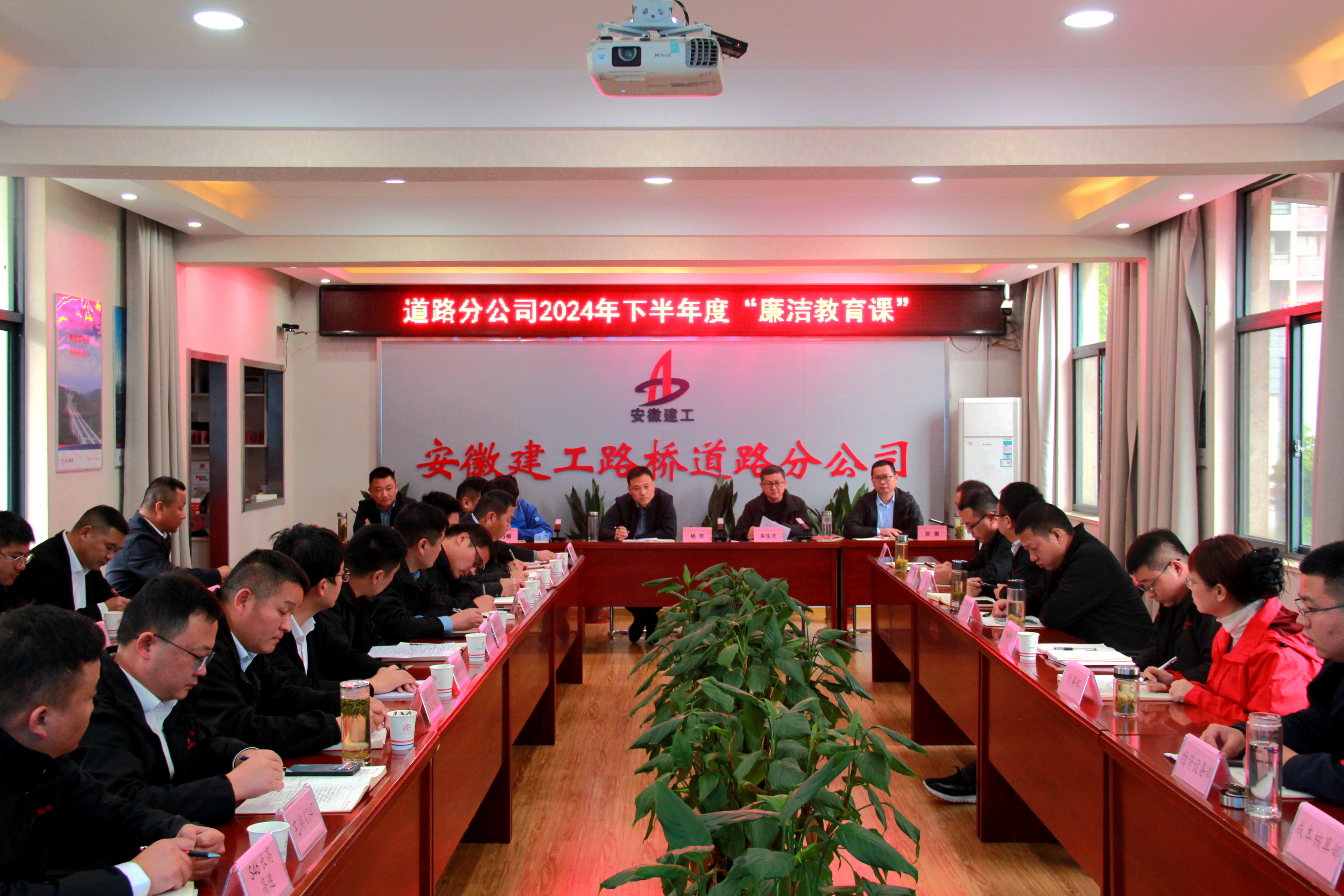 11月9日,道路分公司黨總支開展2024年下半年度“廉潔教育課”,分公司領導班子、機關部門負責人、所屬各項目經(jīng)理、黨支部書記參加會議。