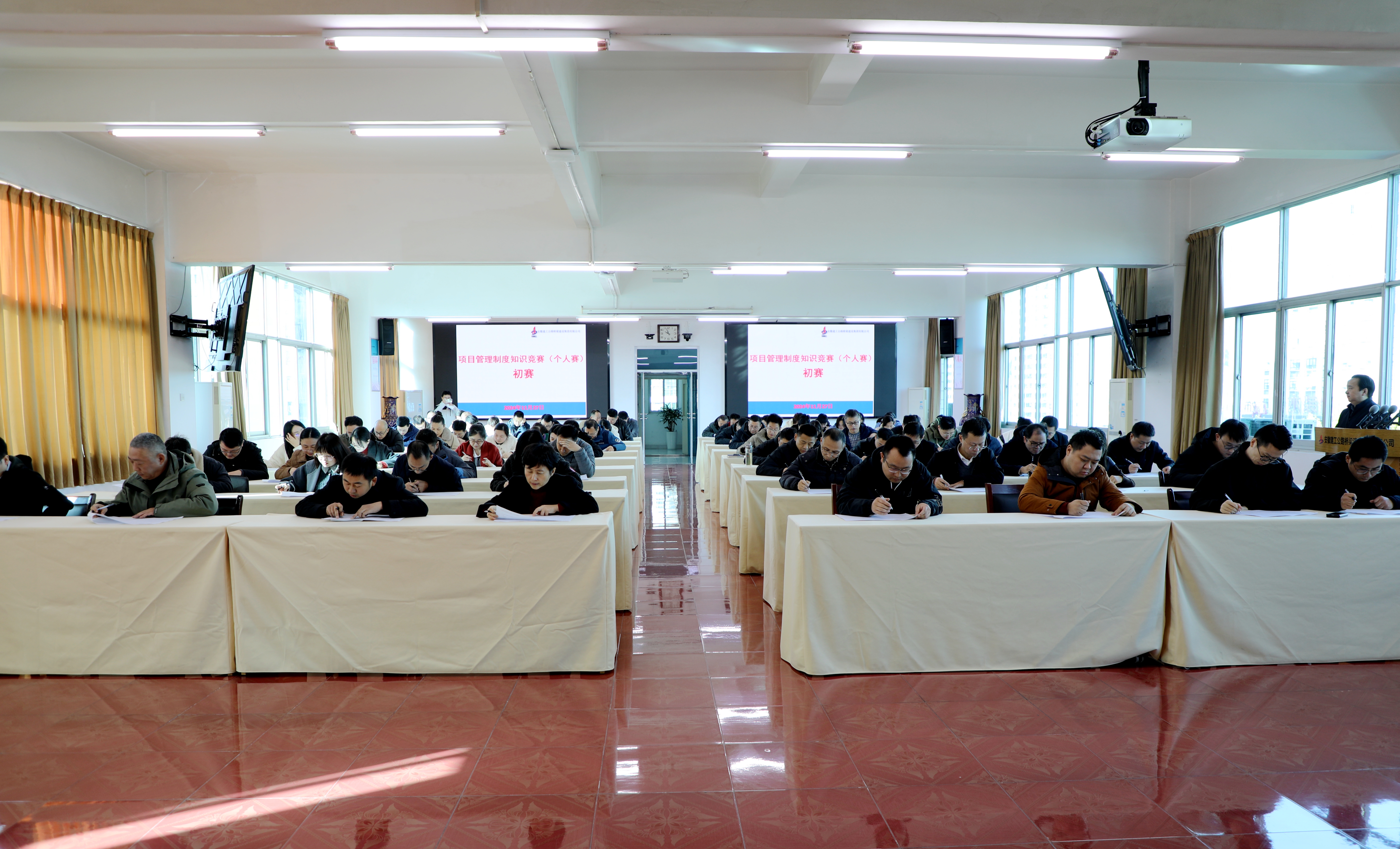 公司機(jī)關(guān)全體管理人員在七樓會(huì)議室集中閉卷考試,集團(tuán)工程管理部與公司工程管理部現(xiàn)場(chǎng)監(jiān)考,公司紀(jì)委全程監(jiān)督。所屬各單位和項(xiàng)目員工在線上完成測(cè)試。