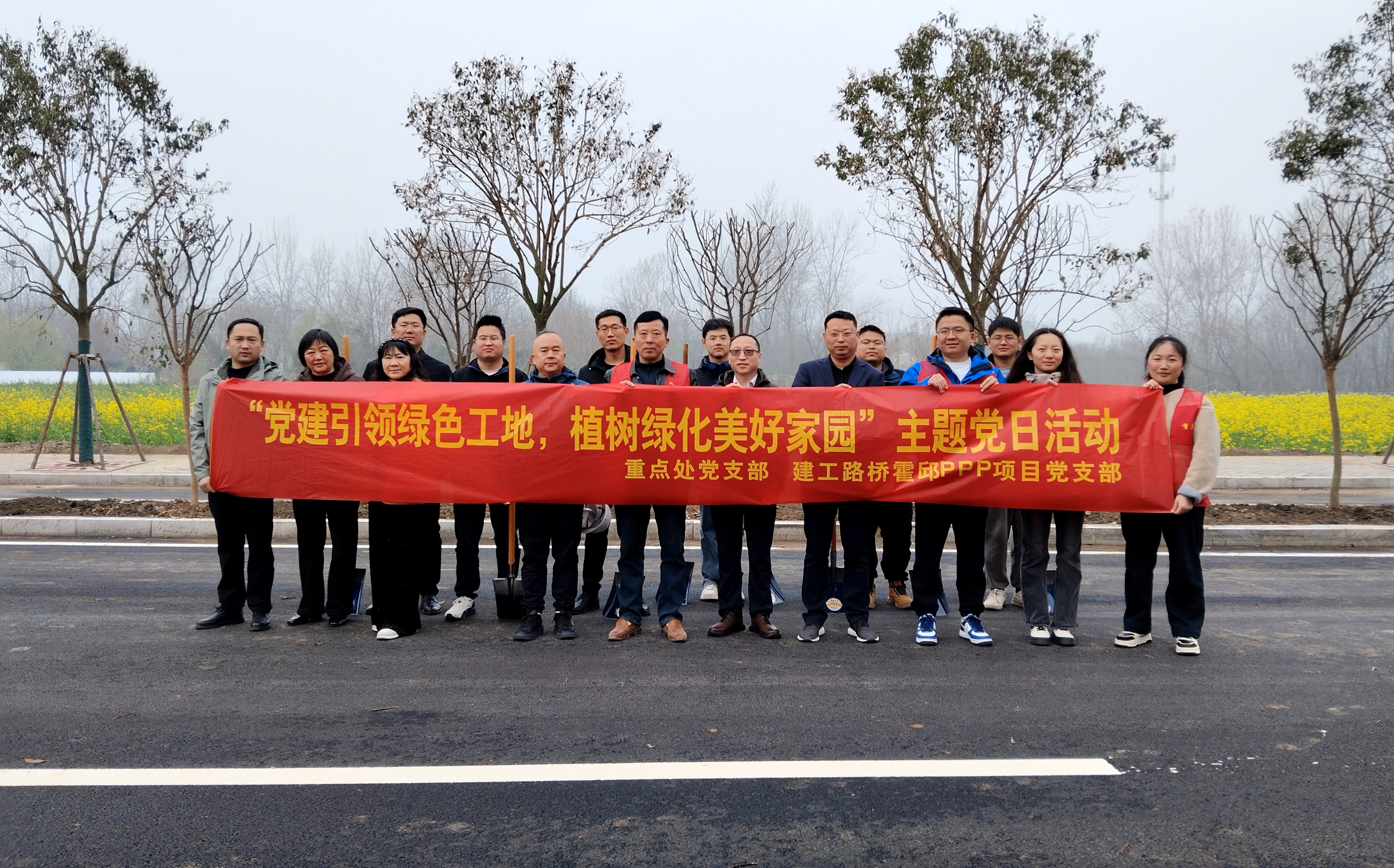 霍邱PPP項目黨支部聯(lián)合縣重點處和項目公司開展“黨建引領(lǐng)綠色工地,植樹綠化美好家園”主題黨日活動。項目全體黨員和青年職工積極行動,不負春光添新綠。