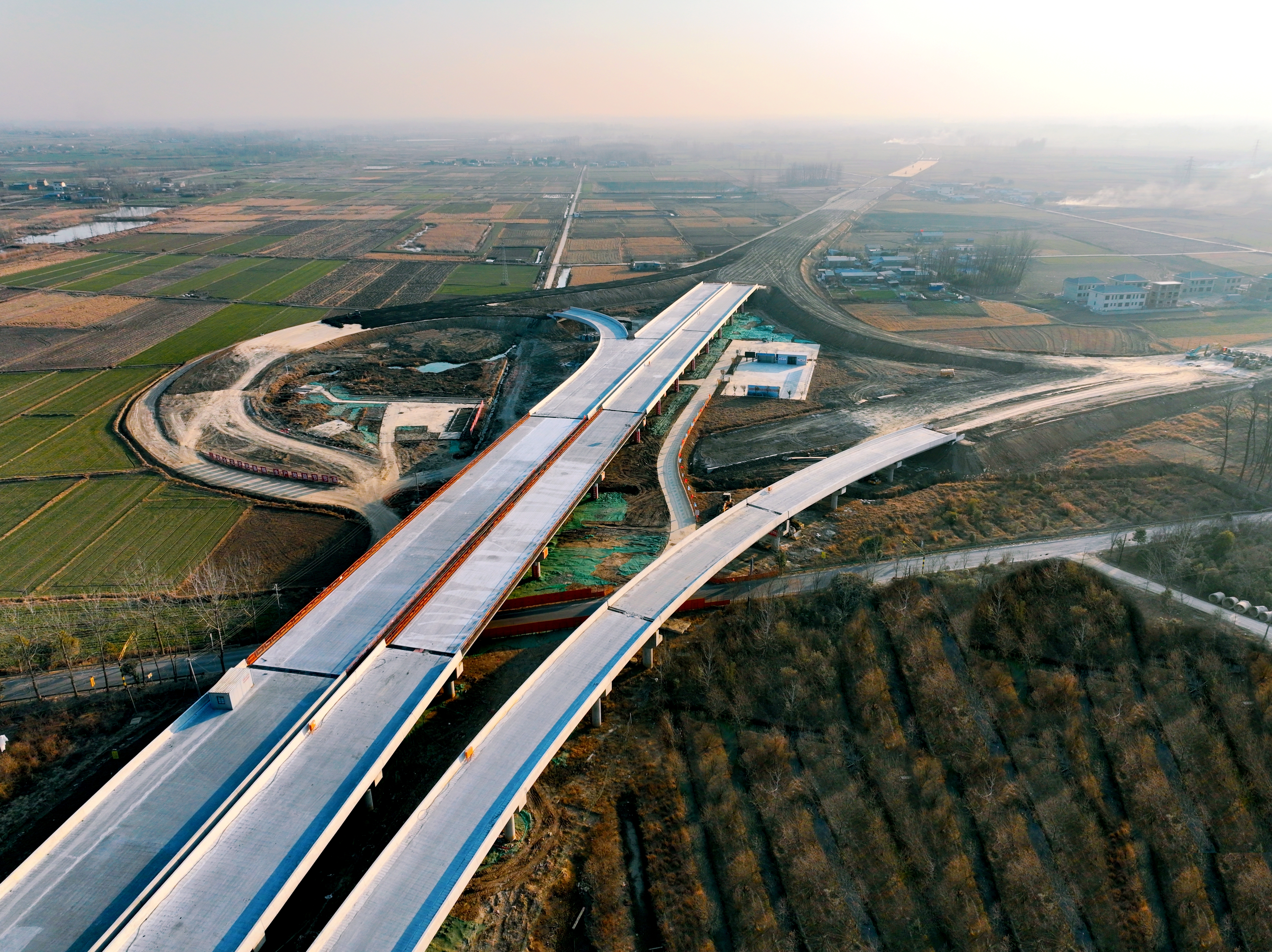 據(jù)了解,S19淮桐高速淮南段路基4標(biāo)段項(xiàng)目全長(zhǎng)9.6千米,有互通2處(小甸互通、李山互通)、橋梁15座。在小甸互通,橋面系鋪裝和護(hù)欄施工如火如荼。截至目前,該標(biāo)段已完成合同工程量92%。因主線施工和當(dāng)?shù)囟鄺l縣、鄉(xiāng)道交叉,項(xiàng)目采用“保通匝道+同步施工”方案。通過提前修建一條保通匝道分流交通,積極主動(dòng)做好與當(dāng)?shù)卣臏贤▍f(xié)調(diào),實(shí)現(xiàn)主線通行與匝道橋施工并行推進(jìn),預(yù)計(jì)可縮短工期1個(gè)月。