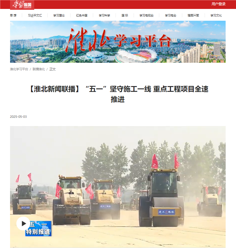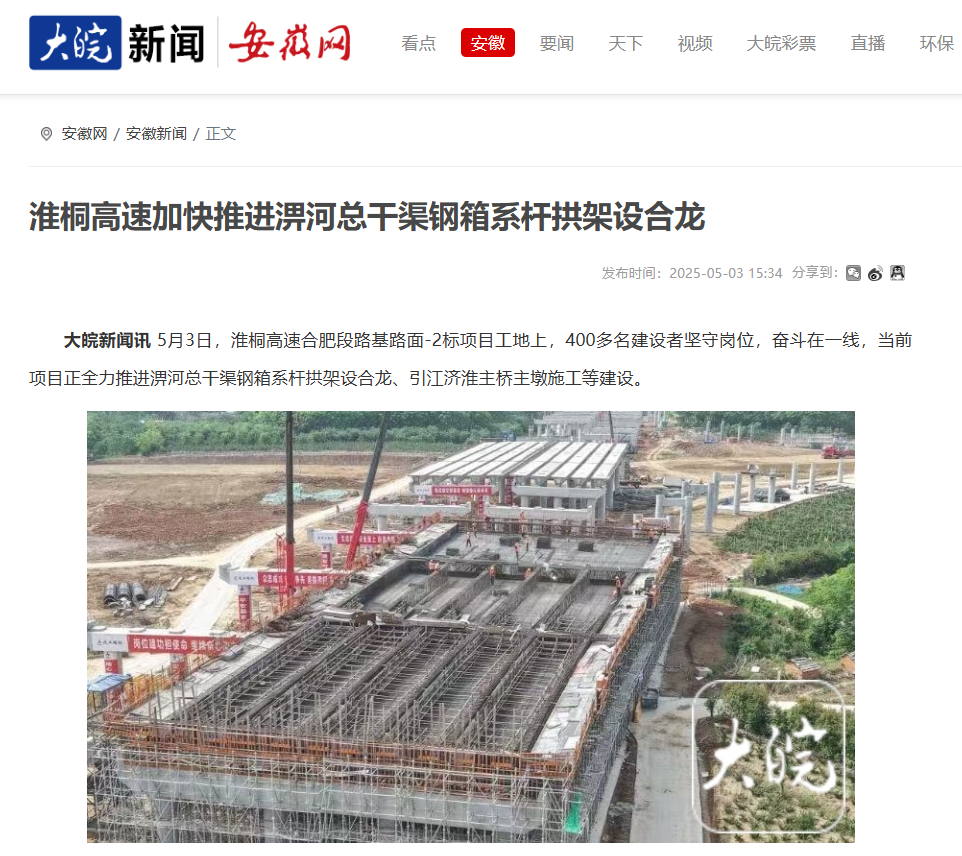 “五一”期間,公司承建的合肥新橋國際機(jī)場綜合交通中心項(xiàng)目、淮桐高速合肥段路基2標(biāo)、S235濉唐路三期項(xiàng)目、徐淮阜高速淮北段項(xiàng)目、S20長固高速路基01標(biāo)等一批項(xiàng)目“火力全開”,奮戰(zhàn)二季度,在江淮大地奏響項(xiàng)目建設(shè)“協(xié)奏曲”,受到央廣網(wǎng)、學(xué)習(xí)強(qiáng)國、安徽新聞聯(lián)播、大皖新聞等多家主流媒體的關(guān)注報(bào)道。