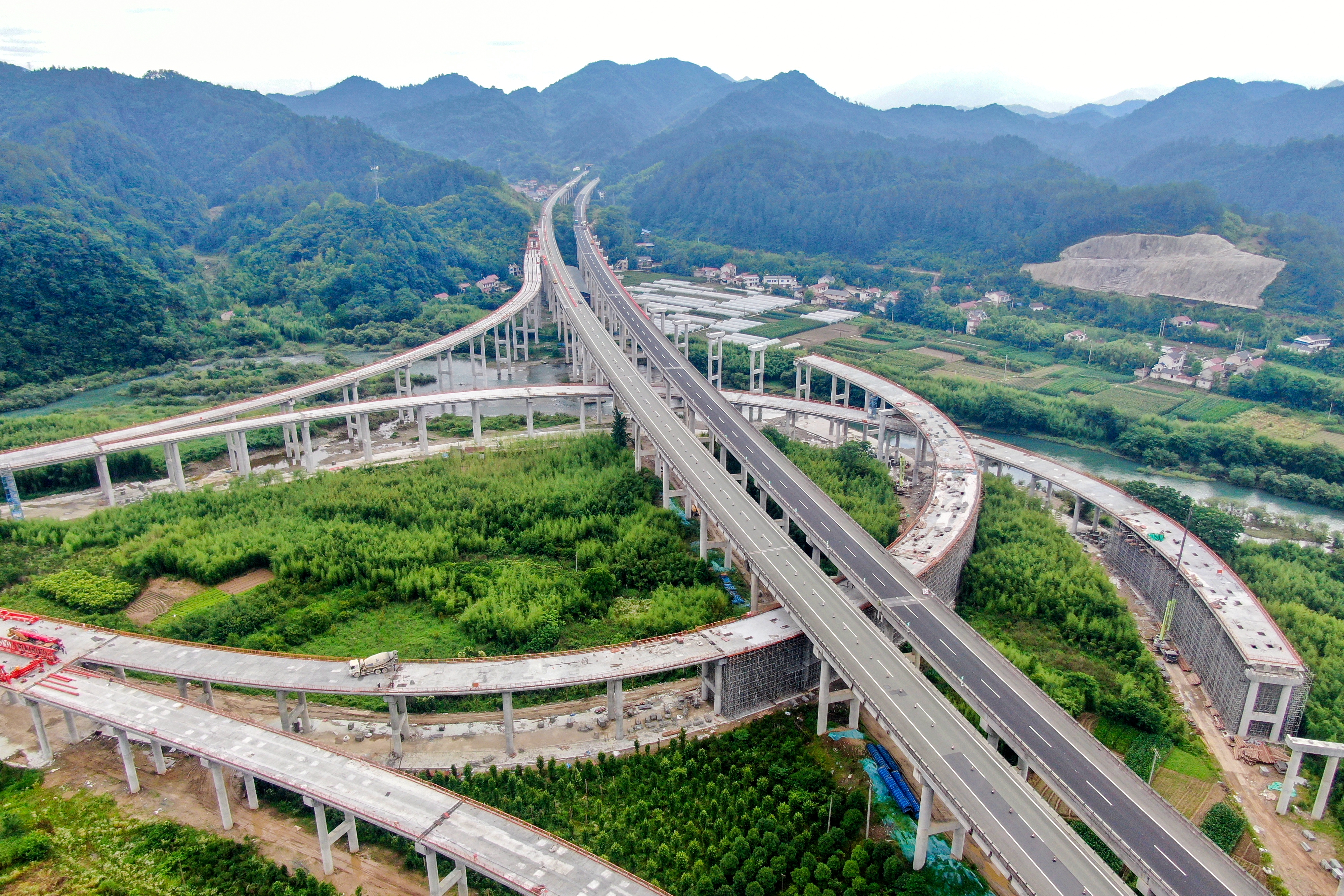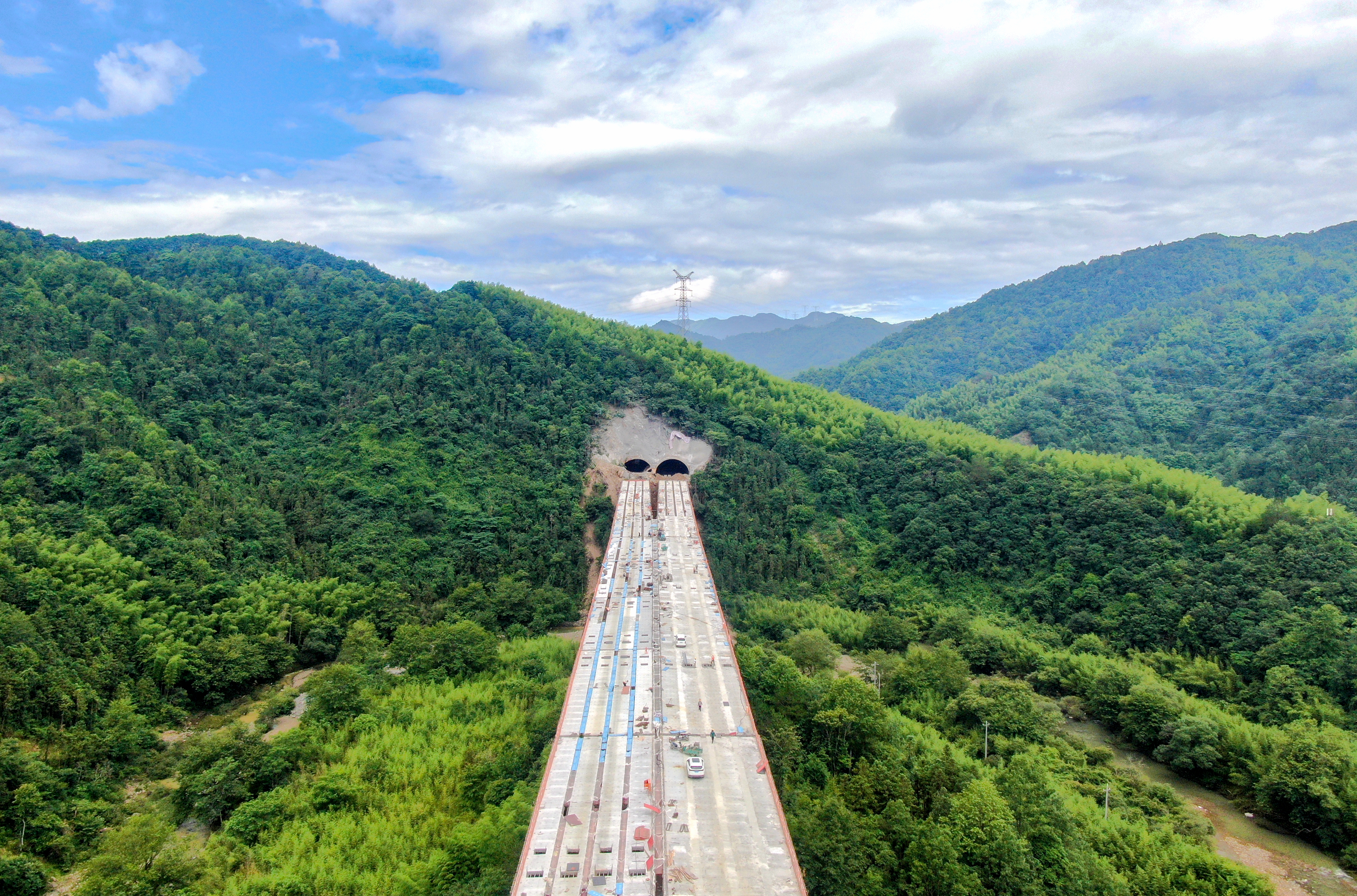 項(xiàng)目緊盯橋梁、隧道等關(guān)鍵節(jié)點(diǎn),加大生產(chǎn)要素投入,科學(xué)優(yōu)化施工方案,動(dòng)態(tài)調(diào)整時(shí)序進(jìn)度。采用“中導(dǎo)洞+兩正洞”施工方式,歷經(jīng)14個(gè)月攻堅(jiān),安全高效實(shí)現(xiàn)新嶺腳隧道貫通目標(biāo);面對安全風(fēng)險(xiǎn)大、工藝要求高等挑戰(zhàn),嚴(yán)格把控支架搭設(shè)、預(yù)壓、澆筑等關(guān)鍵環(huán)節(jié),全方位保障了現(xiàn)澆梁施工的順利完成。