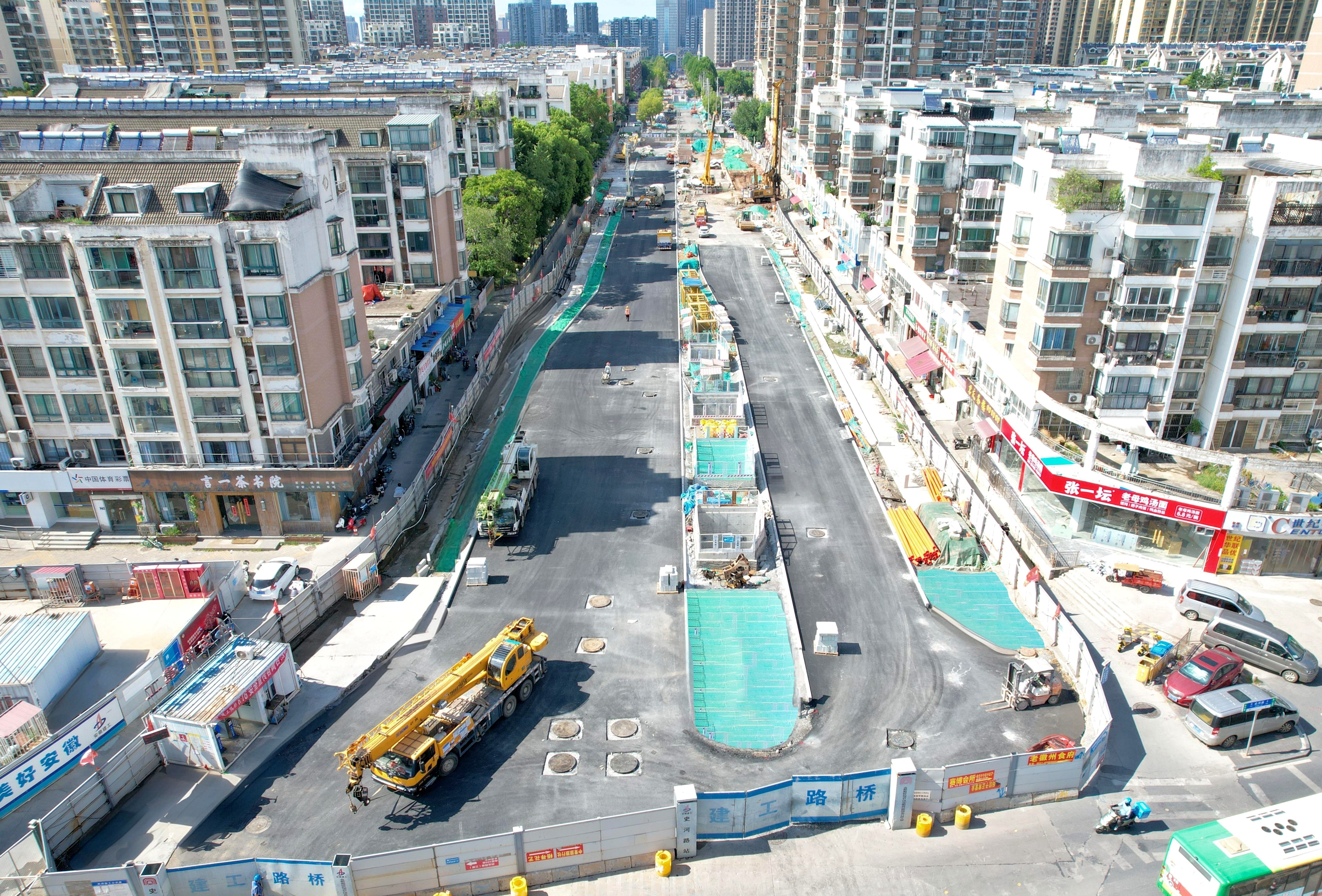 史河路站車站全長(zhǎng)295m,共設(shè)3個(gè)出入口和2組風(fēng)亭,施工緊鄰城市交通、管線密集區(qū),屬于全線控制性工程。面對(duì)狹小的施工空間,項(xiàng)目團(tuán)隊(duì)以方案優(yōu)化破局,精心組織施工,采用網(wǎng)格化管理模式,強(qiáng)化科技創(chuàng)新,成功攻克了深大基坑高強(qiáng)度巖層快速開挖、巖層裂隙水滲流處理及緊鄰住宅小區(qū)揚(yáng)塵環(huán)??刂频仁┕るy題。