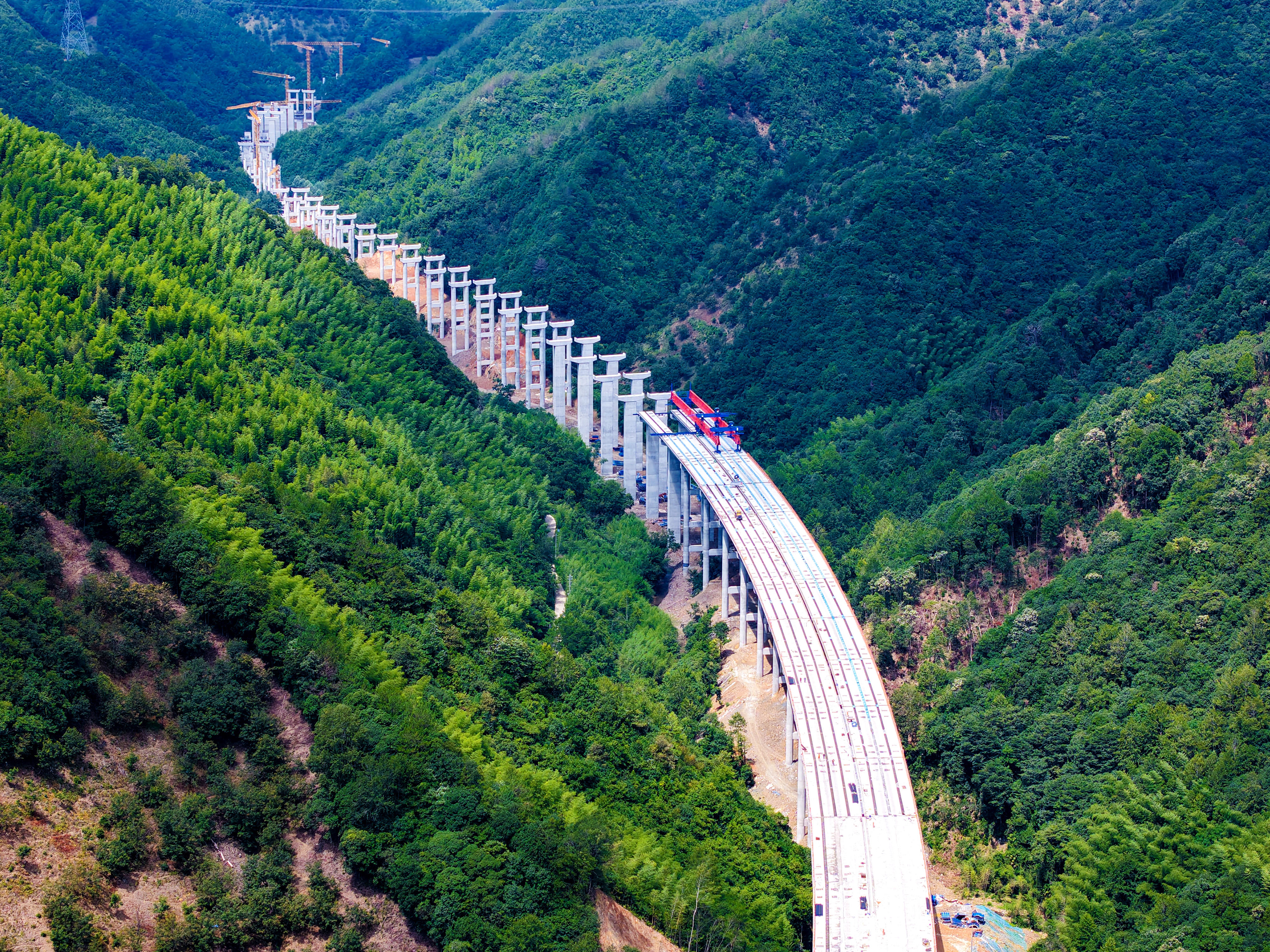 安吉至旌德高速寧國至旌德段項目起點位于寧國市,設胡樂樞紐與溧寧高速銜接,路線向西延伸,終于旌德縣蔡家橋鎮(zhèn)接入S11蕪黃高速,全長約32公里。該項目作為促進“大黃山”地區(qū)與滬蘇浙城市群互聯(lián)互通的重要通道,建成通車后,旌德至杭州的車程將縮短至2小時,大幅提升跨省出行效率。由安徽建工路橋承建的寧旌高速路基1標,包含特大橋1座、大橋3座、樞紐互通1處及短隧道1座。