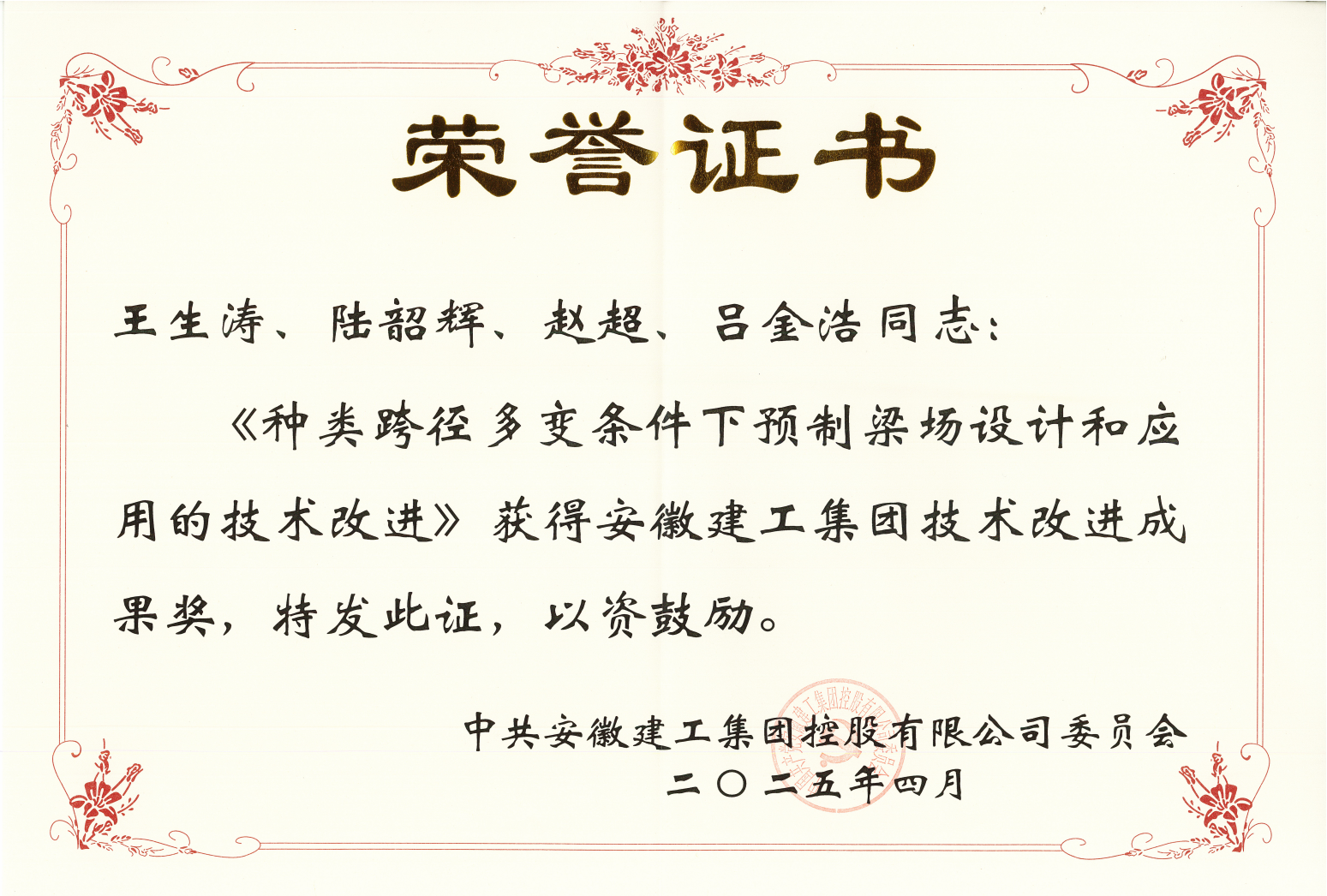 在預(yù)制梁施工中,項(xiàng)目涉及8種不同跨徑的箱梁生產(chǎn)。按照傳統(tǒng)工藝,需對(duì)應(yīng)建設(shè)8種專用臺(tái)座,不僅占用大量場(chǎng)地,還需投入額外成本,且臺(tái)座僅能適配單一跨徑箱梁,資源利用率極低。項(xiàng)目部技術(shù)團(tuán)隊(duì)通過對(duì)比不同跨徑箱梁的結(jié)構(gòu)參數(shù)、受力特點(diǎn),最終確定建設(shè)25米、40米兩種通用臺(tái)座。通過靈活調(diào)整模板支撐結(jié)構(gòu)、優(yōu)化鋼筋綁扎流程,使兩種臺(tái)座可完全適配8種跨徑箱梁的預(yù)制需求。此舉減少了6種專用臺(tái)座的建設(shè)投入,還節(jié)省施工用地約9.8畝,縮短工期15天,相關(guān)技術(shù)成果《種類跨徑多變條件下預(yù)制梁場(chǎng)設(shè)計(jì)和應(yīng)用的技術(shù)改進(jìn)》還榮獲集團(tuán)技術(shù)改進(jìn)獎(jiǎng)及安徽省重大合理化建議獎(jiǎng)。