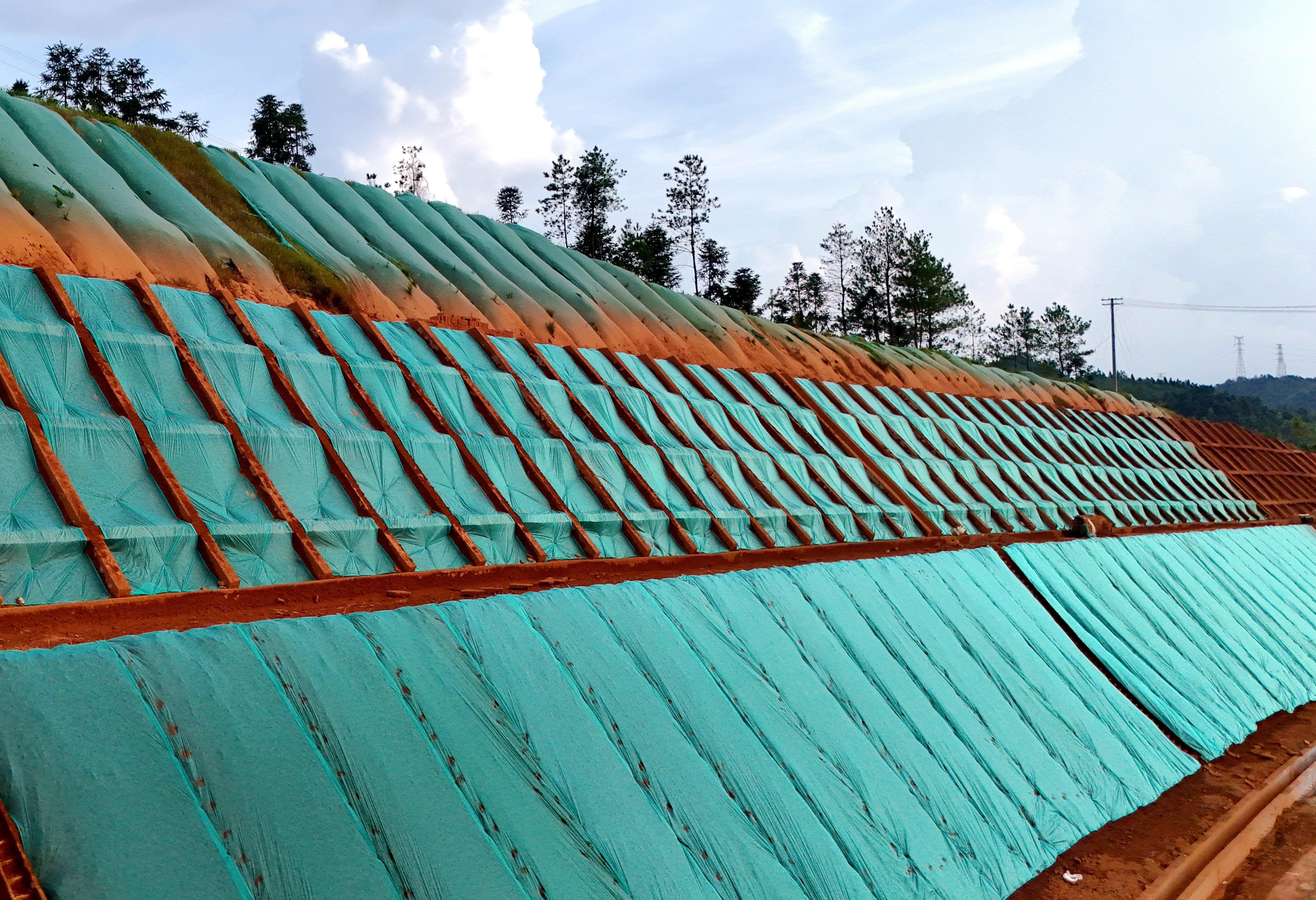 面對土壤本身易侵蝕、穩(wěn)定性差的巨大挑戰(zhàn),項(xiàng)目部提出了“預(yù)防為主、防治結(jié)合、全程管控”的施工思路。在滿足穩(wěn)定性的前提下控制坡率,有效降低坡面流速,減少侵蝕;同時采取“開挖一段、防護(hù)一段、綠化一段”的分區(qū)作業(yè)、分段施工方式,避免大面積同時開挖,縮短土壤裸露的時間;并針對紅壤酸性強(qiáng)、貧瘠、直接綠化困難的特點(diǎn),充分發(fā)揮項(xiàng)目技術(shù)與設(shè)備優(yōu)勢,選取耐貧瘠、耐酸性、固土能力強(qiáng)、根系發(fā)達(dá)的本地草種,將種子、肥料、土壤改良劑、粘合劑、保水劑等與水混合,成功改良坡面土壤。通過該施工方法,項(xiàng)目降低綜合成本18%,水土流失減少70%,實(shí)現(xiàn)了降本增效與生態(tài)環(huán)保的多重效益。