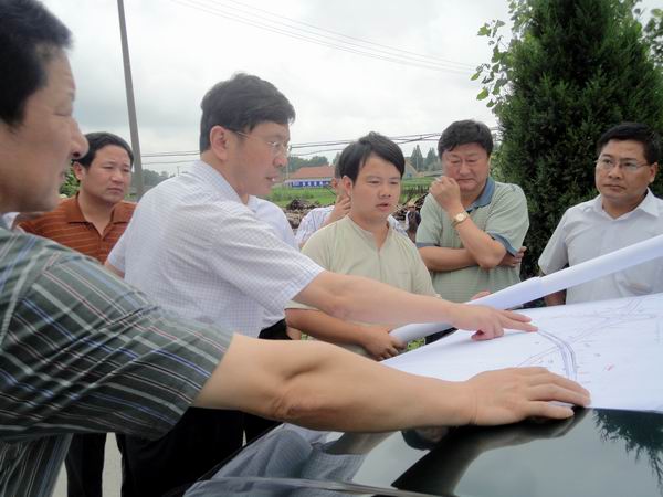 羅副廳長一行來到項(xiàng)目后立即實(shí)地察看了現(xiàn)場。宣寧高速項(xiàng)目辦方昱主任擺開事先準(zhǔn)備好的工程圖,向羅副廳長詳細(xì)說明了工程現(xiàn)狀。羅副廳長一行還來到了K9+314支線上跨橋現(xiàn)場,在對周邊地理環(huán)境進(jìn)行考察之后,立即召集相關(guān)部門人員和技術(shù)人員對變更事宜進(jìn)行了現(xiàn)場分析討論。在詳細(xì)了解了現(xiàn)場情況后,羅副廳長一行在張慶書等的陪同下驅(qū)車離去,在回程中對方案細(xì)節(jié)做更深入的規(guī)劃討論。