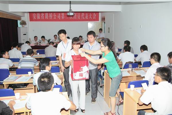 上午8點15分,大會在莊嚴的《國歌》聲中正式開始。公司工會胡運春主席和省建科院團委操雪榮書記分別向大會致賀詞。大會認真聽取、審議并通過了公司團委副書記曹勇同志代表公司團委所作的題為《緊跟黨的步伐 圍繞中心工作 團結(jié)帶領(lǐng)全體團員青年為公司發(fā)展貢獻青春力量》的工作報告。會上,代表們充分履行自己的選舉權(quán)利,鄭重而又莊嚴的往投票箱里投入選票。通過嚴格的選舉程序,曹勇、邢靜、李艾梅、王介、徐禮寶、趙明星、王強七位同志當選為公司第二屆團委委員。大會通過了安徽省路橋公司第二次團代會決議,號召各級團組織、全體共青團員緊跟黨的步伐,服務(wù)團員青年,團結(jié)帶領(lǐng)全體團員青年為公司發(fā)展貢獻青春力量。
