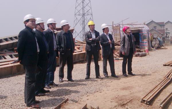 46上午,安徽建工集團(tuán)副總經(jīng)理、總工程師戴良軍、總經(jīng)理助理郭道真等領(lǐng)導(dǎo),在公司總經(jīng)理汪衛(wèi)東、副總經(jīng)理盛明宏等的陪同下,蒞臨宣貍BT項(xiàng)目檢查指導(dǎo)工作。